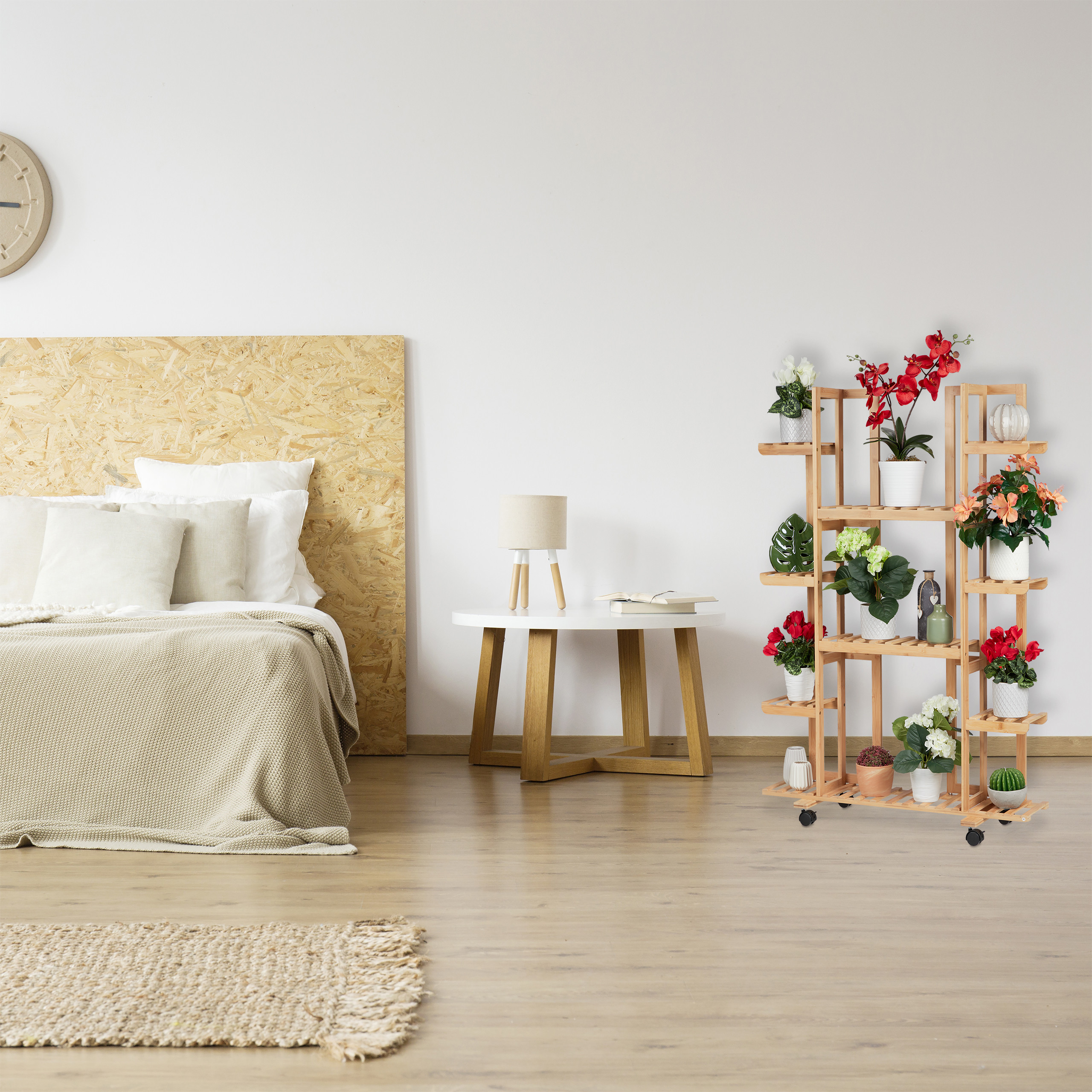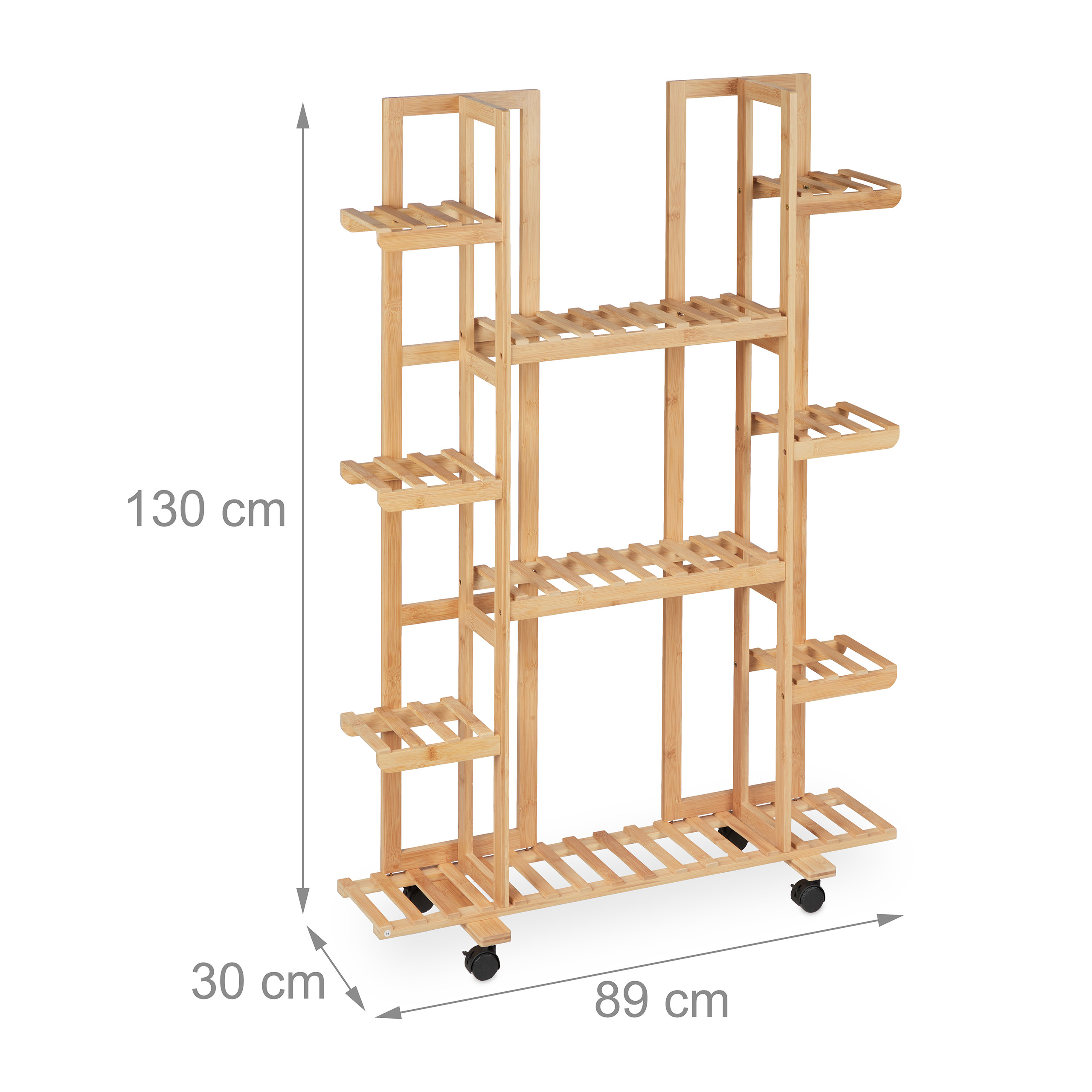 Gėlių stovas ant ratukų su 9 lentynomis 130x89x30cm., šviesiai rudos/juodos spalvos