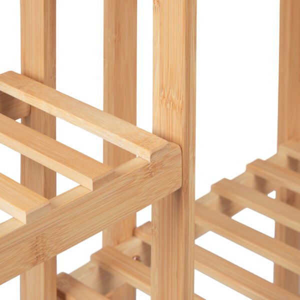 Pristatome elegantišką ir funkcionalų gėlių stovą, kuris taps puikiu akcentu jūsų namų interjere. Šis stovas, pagamintas iš aukštos kokybės bambuko, suteikia galimybę stilingai išdėstyti jūsų mėgstamus kambarinius augalus ir dekoratyvinius elementus.