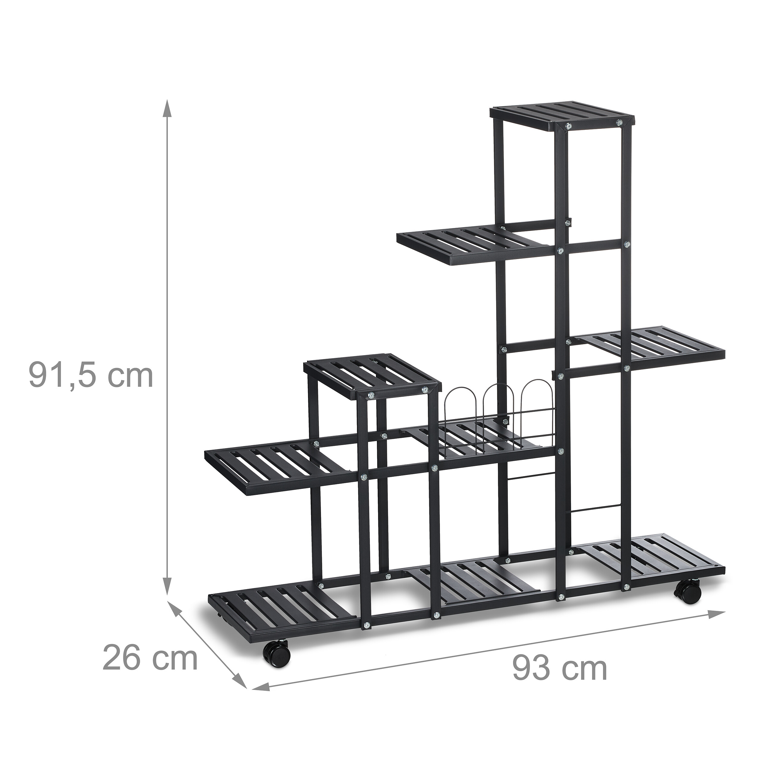 Gėlių stovas ant ratukų su 9 lentynomis – Juodos spalvos
