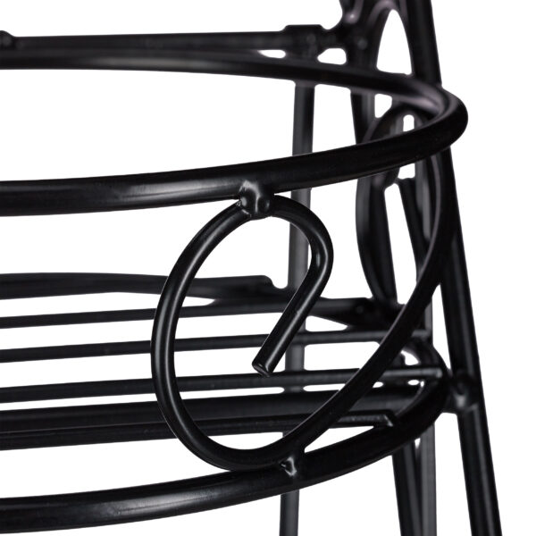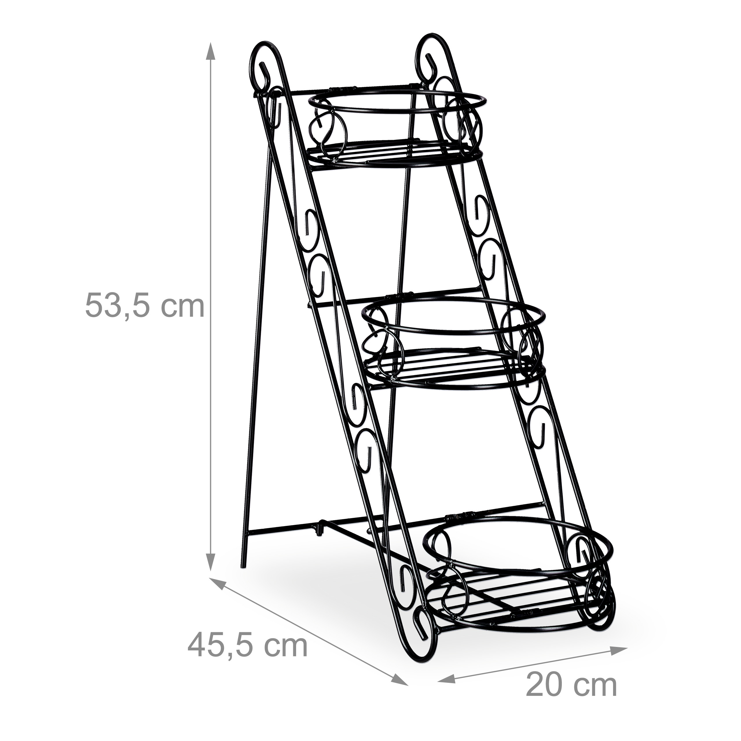 Pristatome jums išskirtinį gėlių stovą su 3 lentynomis, kurio matmenys yra 53,5x20x45,5 cm. Šis juodos spalvos stovas ne tik suteiks jūsų augalams puikią vietą augti, bet ir taps stilingu interjero ar eksterjero akcentu. Jo vintažinis dizainas puikiai dera tiek moderniame, tiek klasikiniame interjere.