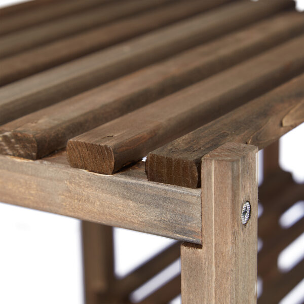 Pristatome jums išskirtinį gėlių stovą su 7 lentynomis, kuris taps ne tik praktišku, bet ir stilingu jūsų interjero akcentu. Šis tamsiai rudos spalvos stovas, kurio matmenys yra 86x95x29 cm, puikiai tiks tiek moderniame, tiek tradiciniame interjere.