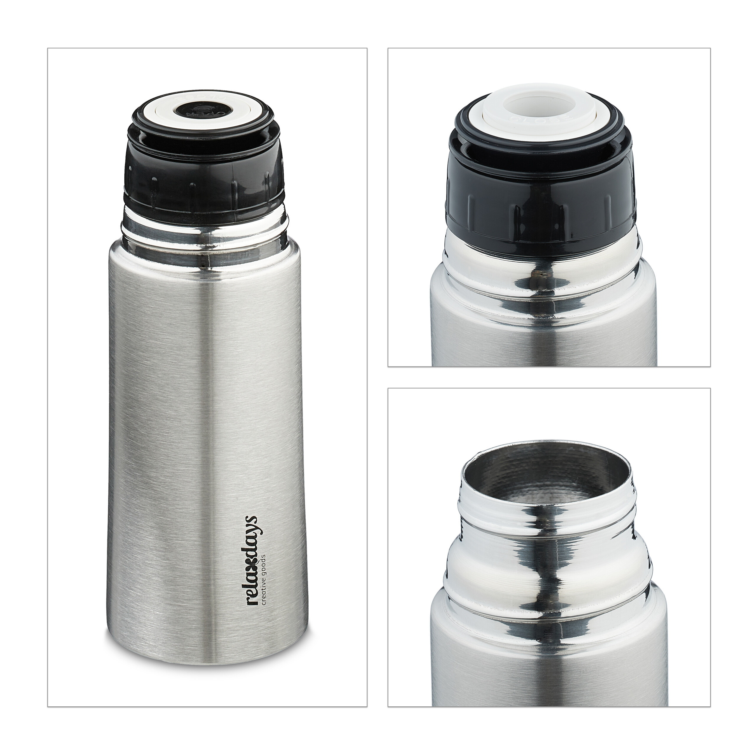 - Integruotas puodelis: Juodą gėrimo butelio dangtelį galite naudoti kaip puodelį, suteikiant papildomą patogumą.