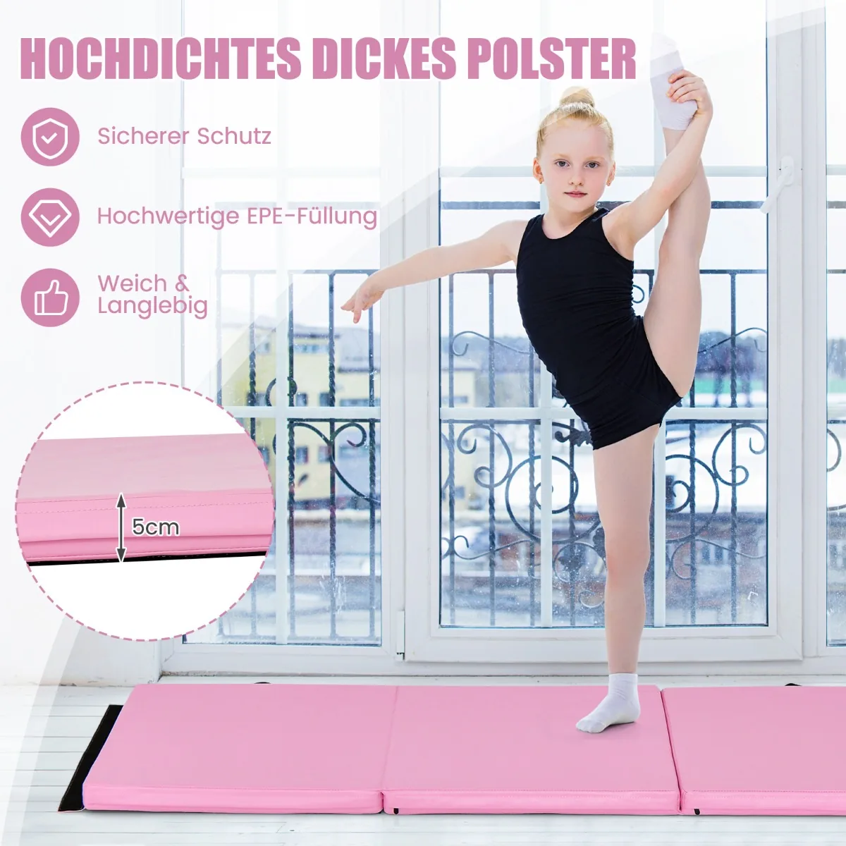 - Trijų dalių sulankstomas kilimėlis, patogus saugojimui
