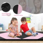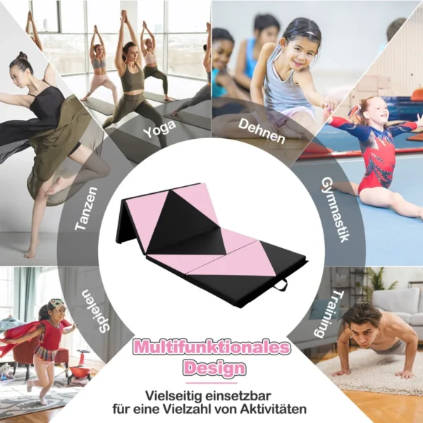 Gimnastikos kilimėlis 240x117x5cm juodos ir rožinės spalvos skirtas įvairioms treniruotėms ir vaikų žaidimams. Kilimėlis pagamintas iš patvarios sintetinės odos ir paminkštintas didelio tankio EPE putplasčiu, užtikrinant komfortą ir apsaugą sportuojant.