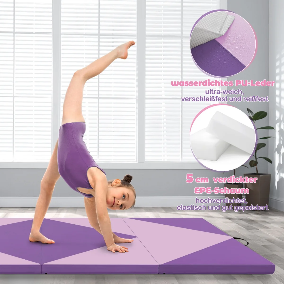 - 1 x sulankstomas gimnastikos kilimėlis 240x117x5 cm