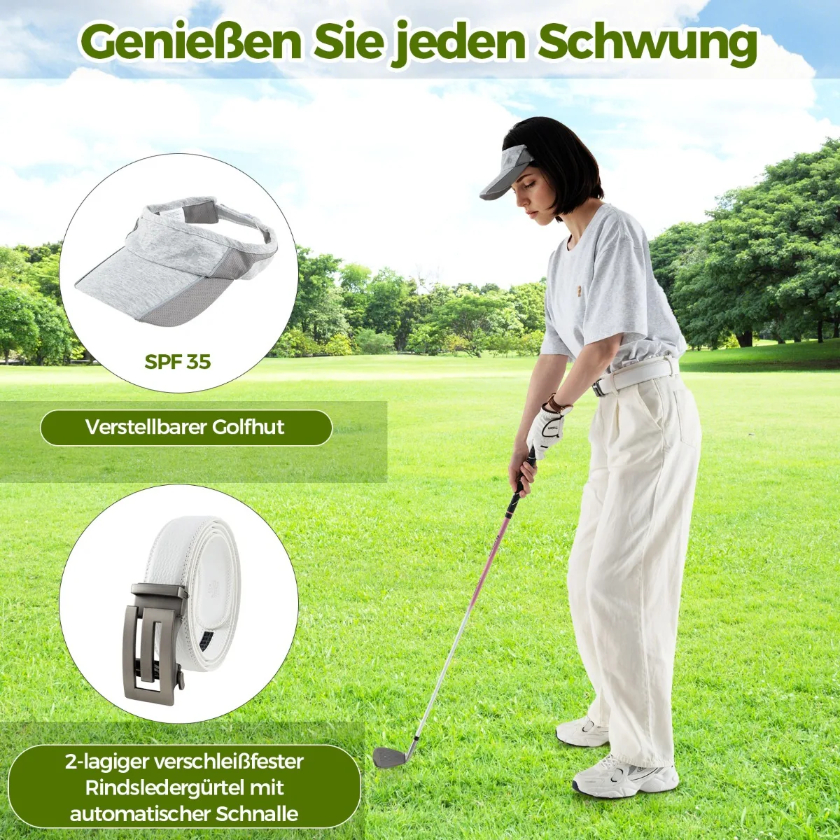 - 1 x golfo kepurė su apsaugos nuo saulės dangteliu