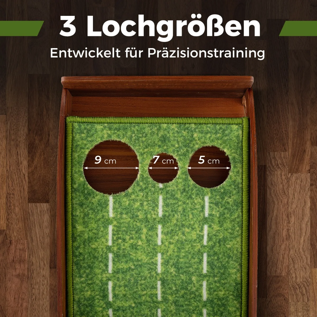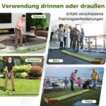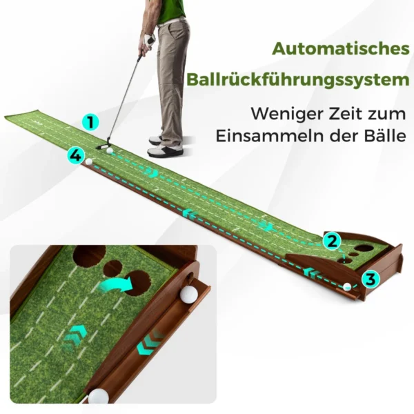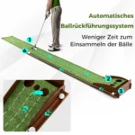 Golfo kilimėlis 302x37x15cm žalios ir rudos spalvos skirtas golfo dėjimo įgūdžių tobulinimui tiek pradedantiesiems, tiek patyrusiems žaidėjams. Automatinė kamuoliuko grąžinimo sistema leidžia efektyviai praktikuotis be nuolatinio kamuoliukų rinkimo.