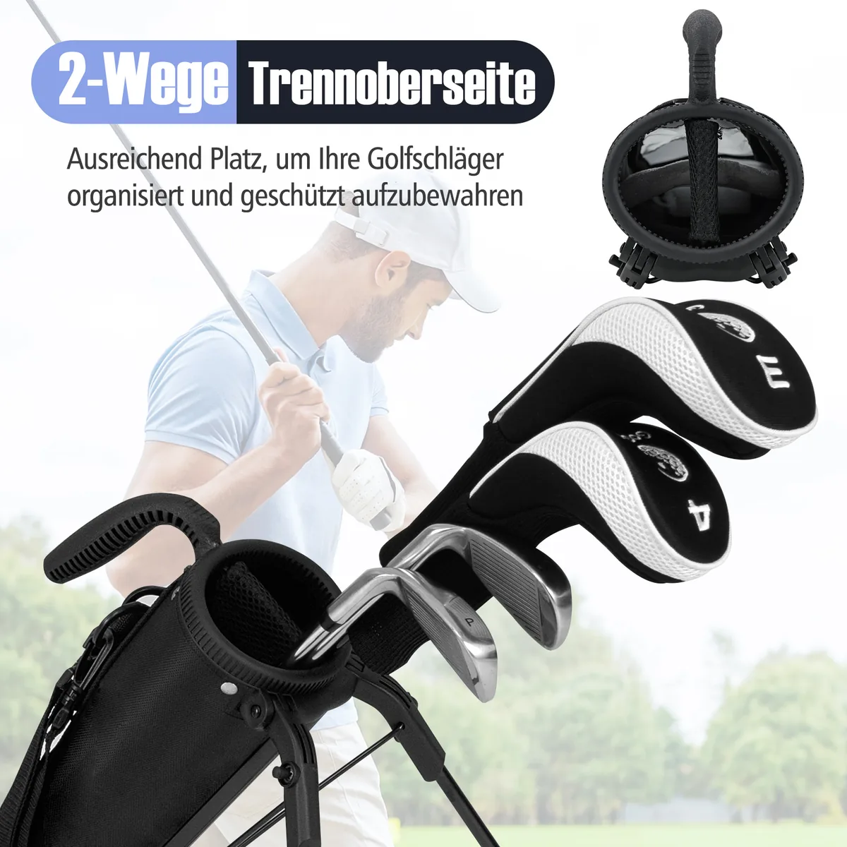 - Lengvas golfo stovo krepšys, skirtas patogiam golfo lazdų transportavimui.