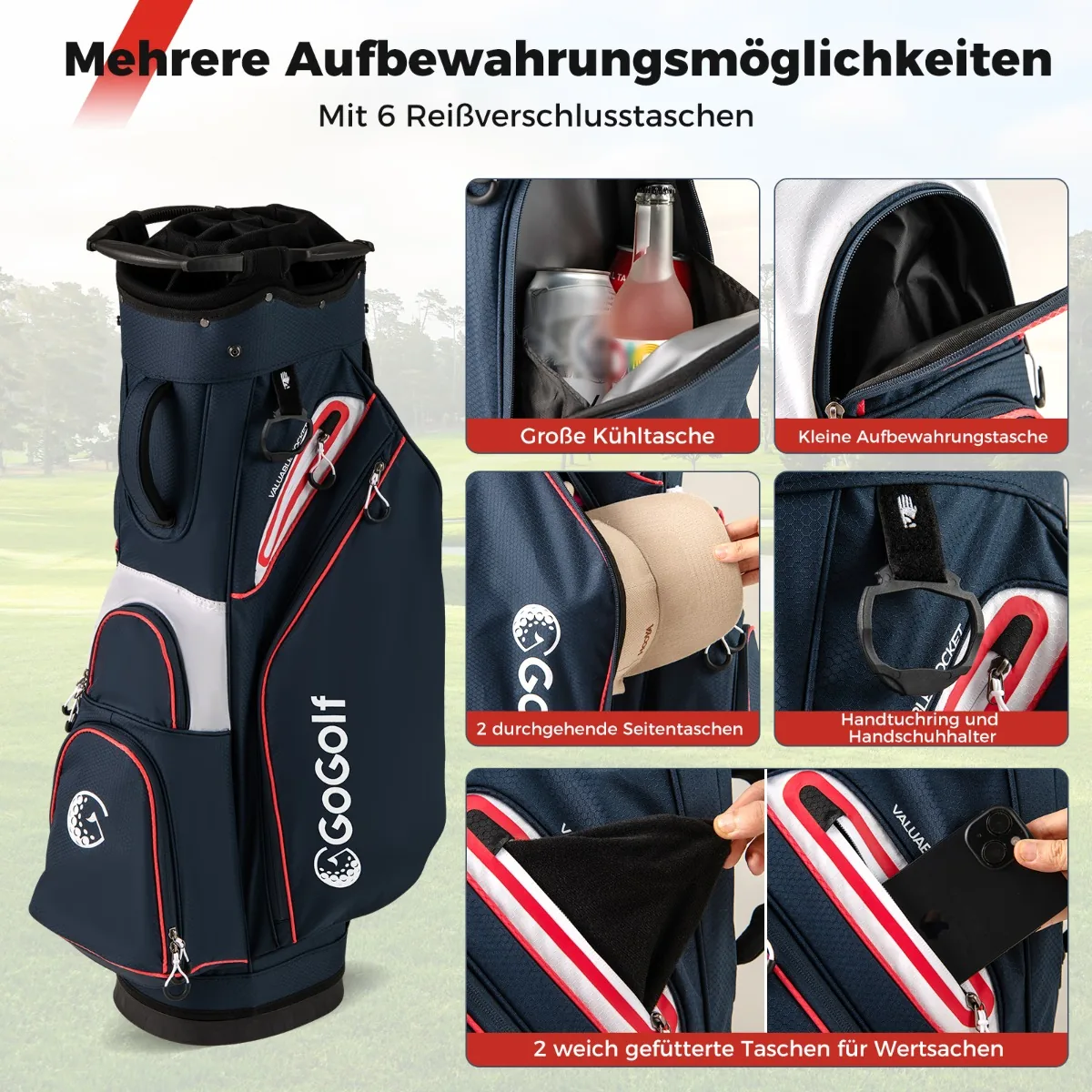 - 14 krypčių padalintas viršus, skirtas golfo lazdoms tvarkingai sudėti ir apsaugoti.