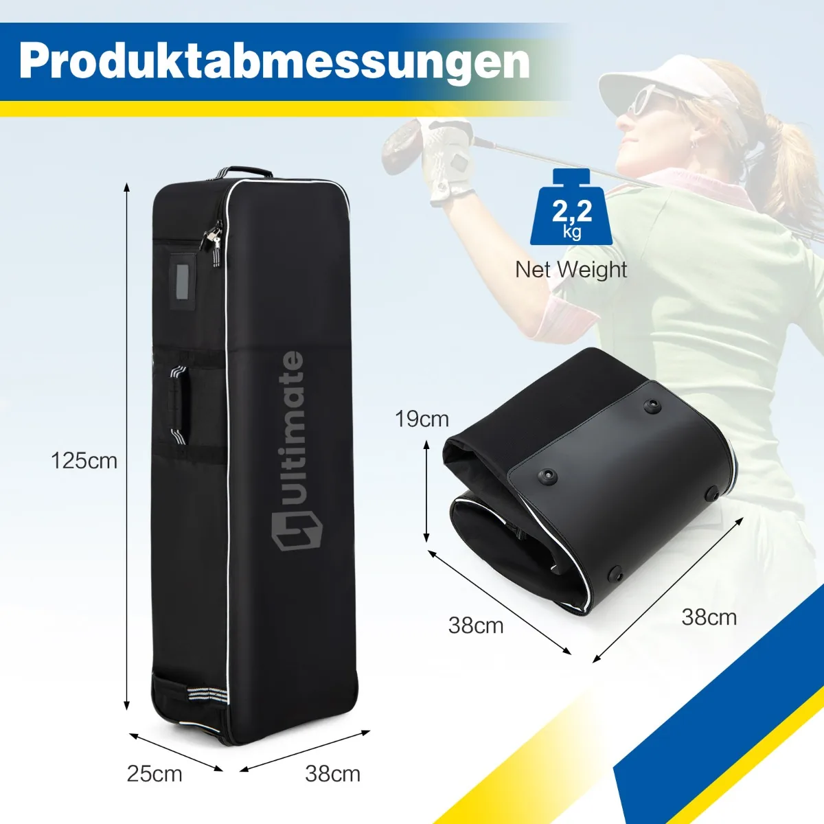 Golfo krepšys 38x25x125 cm juodos spalvos skirtas patogiam golfo lazdų ir įrangos transportavimui. Krepšys turi ratukus ir nešiojimo rankenas, leidžiančias lengvai judėti golfo aikštyne ar kelionėje. Dėl tvirto oksfordo audinio ir paminkštinimo jūsų golfo įranga bus apsaugota nuo pažeidimų.
