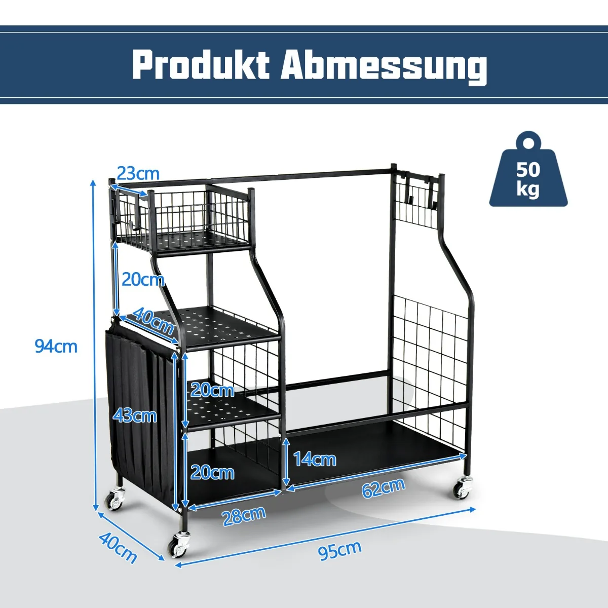 - Matmenys: 95 cm x 40 cm x 94 cm (ilgis x plotis x aukštis)