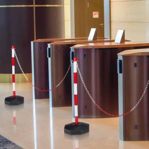 - Lankstumas: Su maždaug 1,40 metro ilgio grandine, šie stulpeliai leidžia lanksčiai išdėstyti ir pritaikyti barjerą pagal jūsų poreikius.