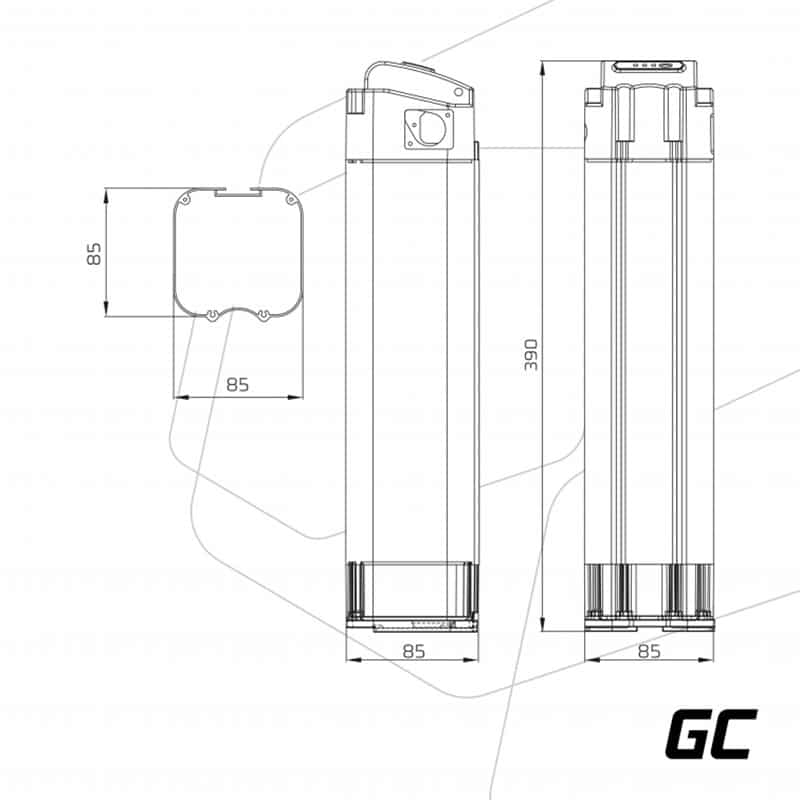 12 mėnesių garantija 4 kontaktų išvestis Patrankos įėjimas Green Cell elementų gamintojas Li-Ion elementų tipas Gaminio kodas EBIKE02STD Green Cell gamintojas Matmenys 39 x 8,5 x 8,5 cm Svoris 3 kg 10,4 Ah talpos LED indikatorius Įtampa 36V Diapazonas nuo 405 km iki 9 km Komplekte: Baterija, pakrovėjas, saugos rakteliai, rankinis Silverfish dėklo tipas Varikliui iki 250W