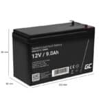 Garantija 24 mėn. Įtampa 12V Tipas VRLA AGM Prekės kodas AGM06 Gamintojas Green Cell Dydis 151 x 65 x 94(98) mm Svoris 2,5kg Talpa 9Ah Terminalas Faston 250 (F2) Gyvybingumas 5 metai