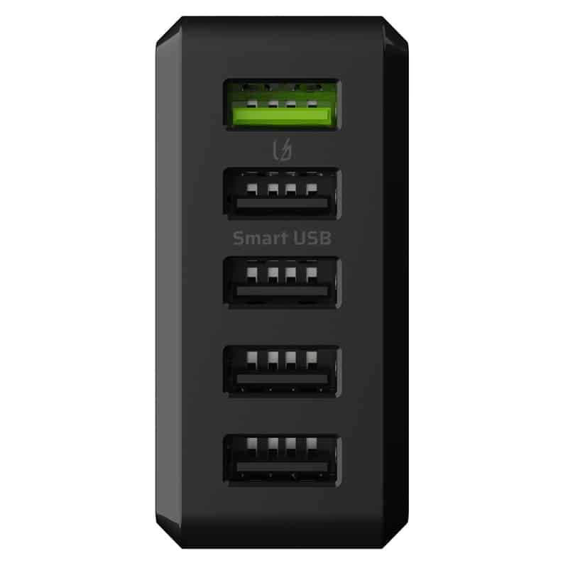 GC ChargeSource 5 įkroviklis su 5 sparčiais USB prievadais, kurių bendra galia 52 W – valdykite laidų ir įkroviklių chaosąUSB-A Ultra Charge prievadas suteiks iki 3,5 karto greitesnį naujausių išmaniųjų telefonų įkrovimą. Keturi USB-A Smart prievadai leis reguliuoti optimalų kiekvieno prijungto įrenginio įkrovimo greitįDėka GC ChargeSource5 galite įkrauti visus suderinamus įrenginius, nepaisant jų turimo prievado tipo (microUSB, Lightning, USB). -C). Išmanieji telefonai, planšetiniai kompiuteriai, „Bluetooth“ ausinės, išmaniosios juostos ar net „Nintendo Switch“ – tereikia tinkamo laido ir neribota prieiga prie energijos taps realybe.Spartieji „ChargeSource 5“ prievadai buvo uždaryti itin lengvai, kompaktiškas ir stilingas korpusas. Dėl to įkroviklis ne tik puikiai atrodo ant stalo, bet ir yra puikus palydovas visose kelionėse.Tvirtas korpusas, puikiai suprojektuotas vidus ir nedideli įkroviklio matmenys garantuoja visišką darbo saugumą ir atsparumą įbrėžimai, smūgiai ir kritimai ne tik namuose, bet ir kelionės metuProdukto savybės:· Galia: 52W· Išėjimas: USB x 5, DC 5V 2.4A x4, DC 12V 1.5A x1· Įvestis: 100 ~ 240V 1A MAX 50 / 60Hz Prievadai: 5xUSB· Suderinamos greito įkrovimo technologijos: QC 3.0, Samsung AFC, Huawei FCP, Apple 2.4A· Apsauga nuo perkaitimo· Apsauga nuo viršįtampio