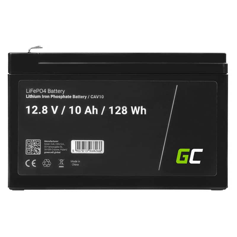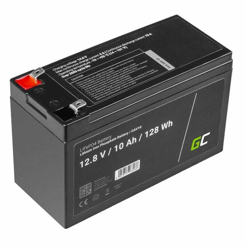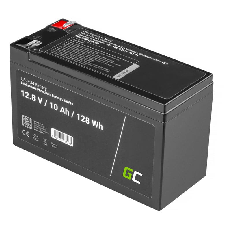 Ličio geležies fosfato baterija pasižymi išskirtiniu patvarumu, našumu ir įkrovimo greičiu. Jis taip pat turi ilgesnį tarnavimo laiką ir yra lengvesnė alternatyva švino rūgšties akumuliatoriams. LiFePO4 išlaiko daugiau nei 80% savo talpos net po 2000 įkrovimo ciklų, todėl jie tarnauja ilgiau nei 7 metus. Dėl mažo savaiminio išsikrovimo greičio akumuliatorius bus visiškai paruoštas darbui net po metų saugojimo. Ilgas akumuliatoriaus tarnavimo laikas ir didelis patvarumas, mažas svoris ir srovės parametrai yra priežastys, kodėl šios baterijos naudojamos laisvalaikio transporto priemonėse ir kemperiuose, valtyse ir fotovoltiniuose įrenginiuose, tiekiant energiją namams naudojant saulės baterijas. Nanofosfatinėse baterijose įdiegta baterijų valdymo sistema BMS, kuri stebi ne tik akumuliatoriaus įkrovimą ir išsikrovimą, bet ir temperatūrą, taip užtikrindama veikimo saugumą bei maksimaliai padidindama akumuliatoriaus tarnavimo laiką. Garantija 24 mėn. Įtampa 12.8V Tipas LiFePO4 Gaminio kodas CAV10 Gamintojas Green Celės dydis 151*65*95 mm Svoris 1.06kg Talpa 10 Ah Darbinė temperatūra nuo 0 iki 45 °C Terminalas Faston 250 (F2)