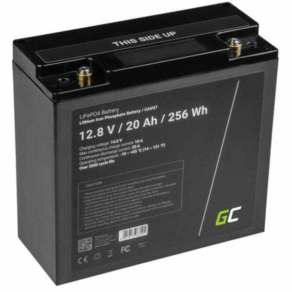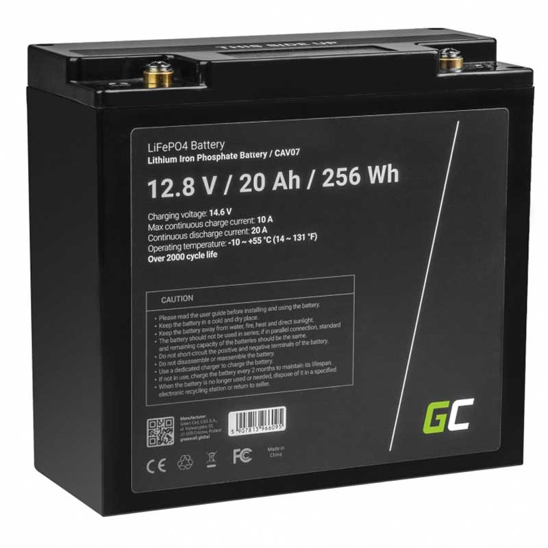 Garantija 24 mėn. Įtampa 12.8V Tipas LiFePO4 Galimybė grąžinti Iki 30 dienų Prekės kodas CAV07 Gamintojas Green Cell Svoris 2.32kg Talpa 20Ah Terminalas M5 (F3)