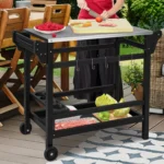 - Mobilus grilio vežimėlis, tinkamas naudoti lauko erdvėse ir viduje.