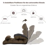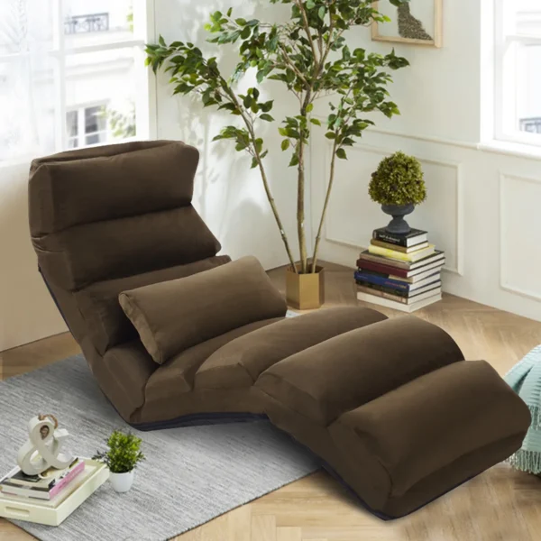 Grindų fotelis 175x55x20cm rudos ir juodos spalvos – praktiškas baldas, skirtas patogiam sėdėjimui ar poilsiui. Dėl 5 krypčių reguliuojamo atlošo ir tvirto plieninio rėmo jis puikiai tinka įvairioms užduotims, įskaitant žiūrėjimą televizorių ar miego poilsį.