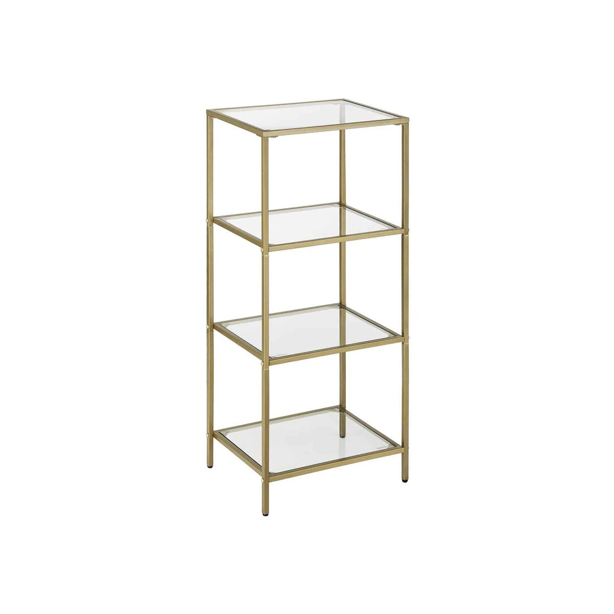 Patvarus stiklas: Šioje lentynoje sumontuotos tvirtos grūdinto stiklo plokštės. Kartu su metaliniu rėmu ir reguliuojamomis kojomis jis gali atlaikyti iki 10 kg vienam lentynos lygiui (maksimali statinė apkrova). Taigi drąsiai užpildykite šį tvirtą baldą daugybe knygų!