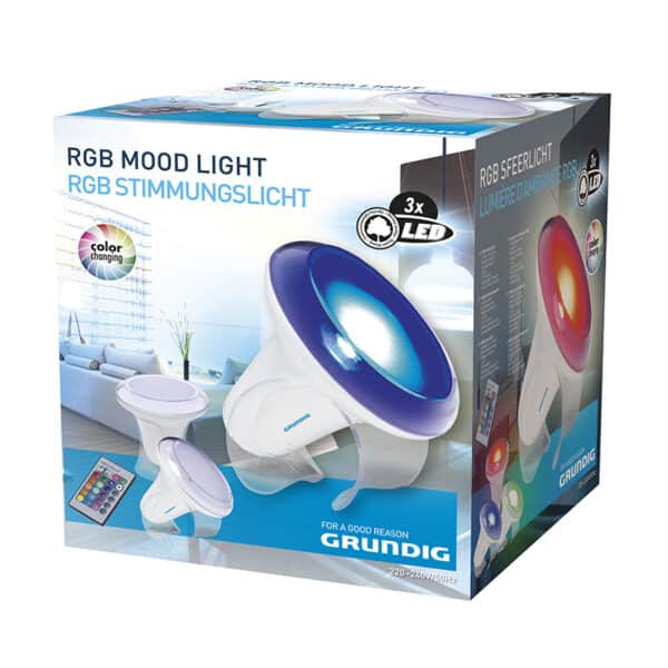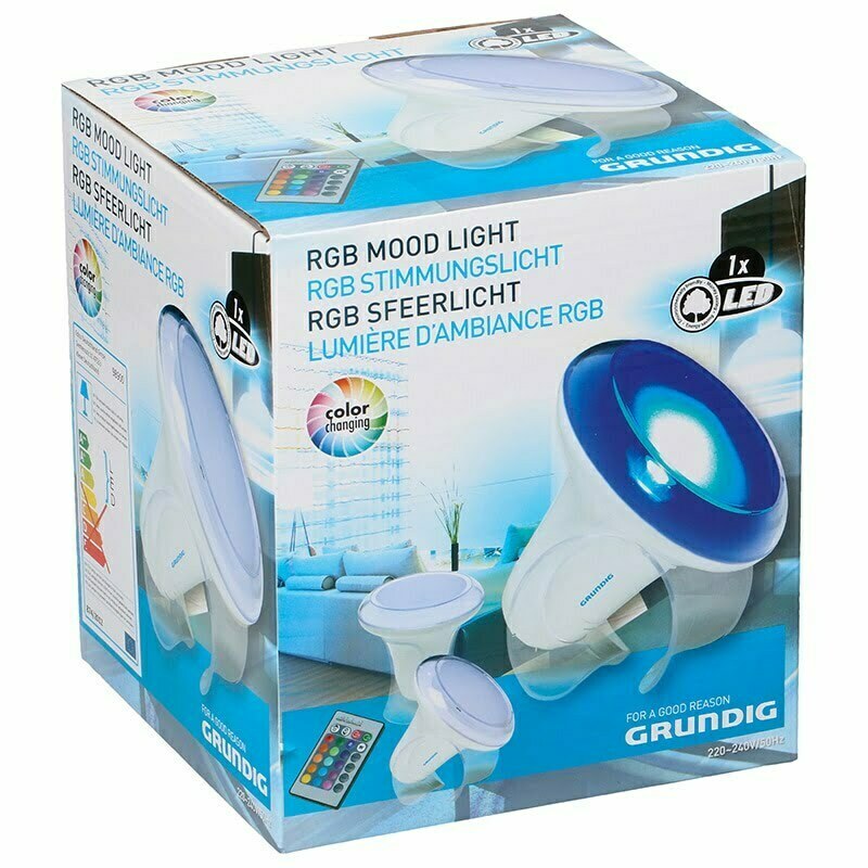 Grundig RGB LED Comfort Colors lempa su nuotaikos apšvietimu. Sukurta taip, kad tilptų į bet kokį interjerą.Niekas nepakeičia kambario atmosferos taip, kaip spalva. Sukurkite tobulą, malonią nuotaiką savo kambaryje.Šviečia įvairiomis spalvomis, kurias labai lengvai pakeisite komplekte esančiu nuotolinio valdymo pulteliu.Nuotolinio valdymo pulteliu vienu metu galima valdyti kelias Comfort Colors lempas.Trys šviesos diodai – raudona, žalia ir mėlyna – sukuria 15 skirtingų bet kokio intensyvumo spalvų.Lempoje yra keturi skirtingi iš anksto užprogramuoti šviesos šou.Norite vienos mėgstamiausios spalvos? Nustatykite jį ir reguliuokite intensyvumą nuotolinio valdymo pulteliu.Ilgas tarnavimo laikas ir mažas energijos suvartojimas.Produkto savybės:- GRUNDIG LEDRGB technologija- 15 skirtingų spalvų – 4 iš anksto užprogramuoti šviesos šou– Kintamos šviesos spalvos ir intensyvumo– Ilgas tarnavimo laikas ir mažos energijos sąnaudos– Kelių „Comfort Colors“ lempučių valdymas vienu nuotolinio valdymo pulteliu– Pridedamas nuotolinio valdymo pultas >- Maitinimas per USB (pridedamas maitinimo laidas + 230 V lizdo adapteris) arba 2x AAA baterijos (nepridedamos)- Matmenys: 16 x 18 x 18 cm