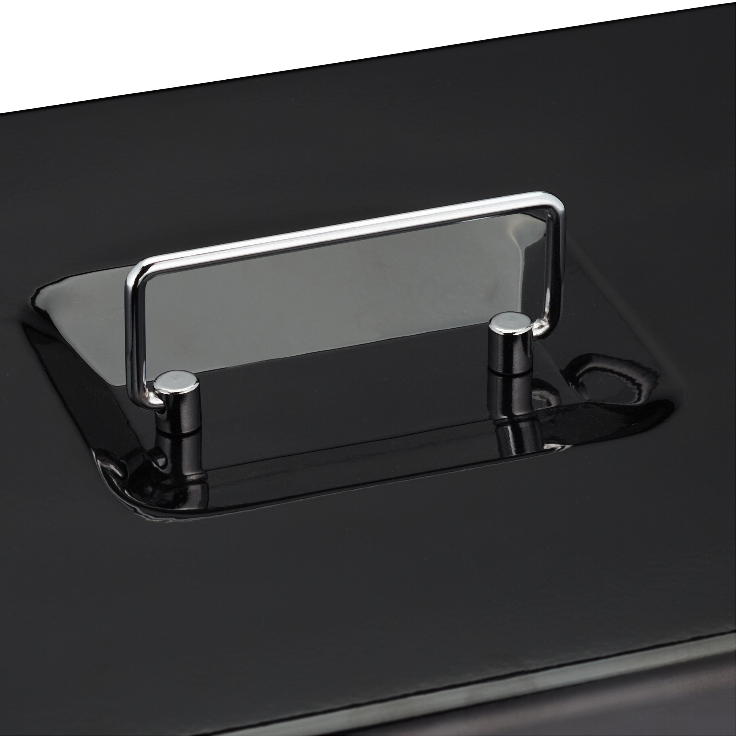 Grynųjų pinigų dėžutė su monetų skaičiavimo lenta, juodos spalvos