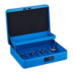 Grynųjų pinigų dėžutė su skaitmeniniu kodu, mėlynos spalvos