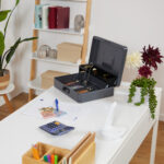 Funkcionalumas: Dėžutė turi 5 skyrelius monetoms, leidžiančius jas rūšiuoti pagal vertę, ir 4 skyrelius banknotams, kad visada turėtumėte aiškią apžvalgą.