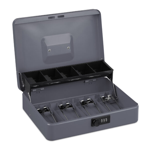 Ieškote patikimo sprendimo savo grynųjų pinigų saugojimui? Mūsų pilkos spalvos grynųjų pinigų dėžutė su skaitmeniniu kodu yra puikus pasirinkimas tiek namų naudojimui, tiek įvairiems renginiams, tokiems kaip sendaikčių turgūs ar mugės. Ši dėžutė užtikrina, kad jūsų pinigai būtų saugūs ir tvarkingai laikomi.