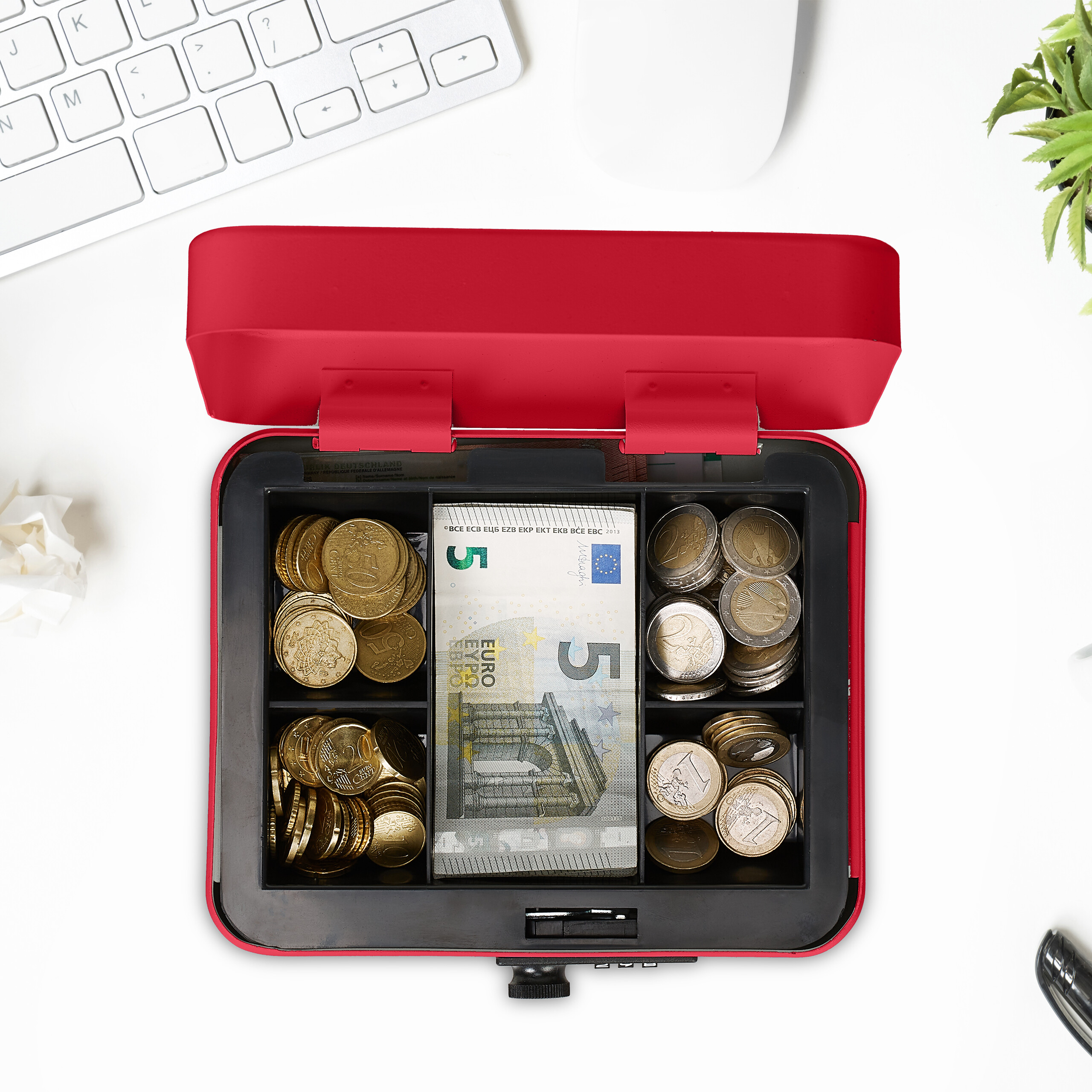 Grynųjų pinigų dėžutė su skaitmeniniu kodu – Raudonos spalvos