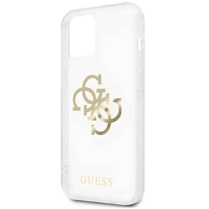 Guess 4G Big Logo Charm Gold dėklas, skirtas iPhone 13 (auksiniai pakabukai)