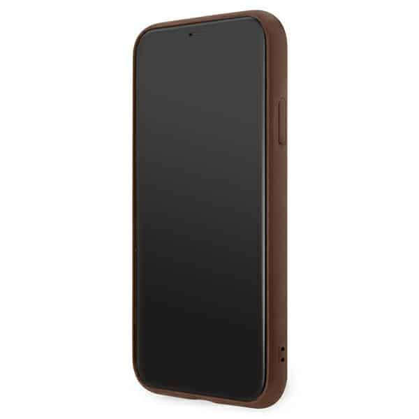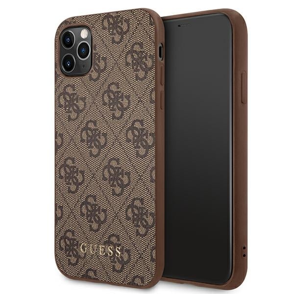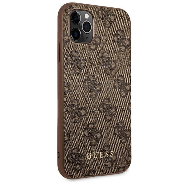 Guess 4G metalinis auksinis logotipas – dėklas, skirtas iPhone 11 Pro (rudas)