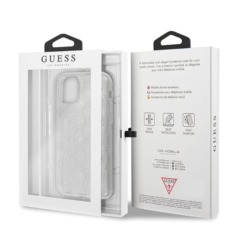 Guess 4G Peony Glitter – dėklas, skirtas iPhone 11 Pro (sidabras)