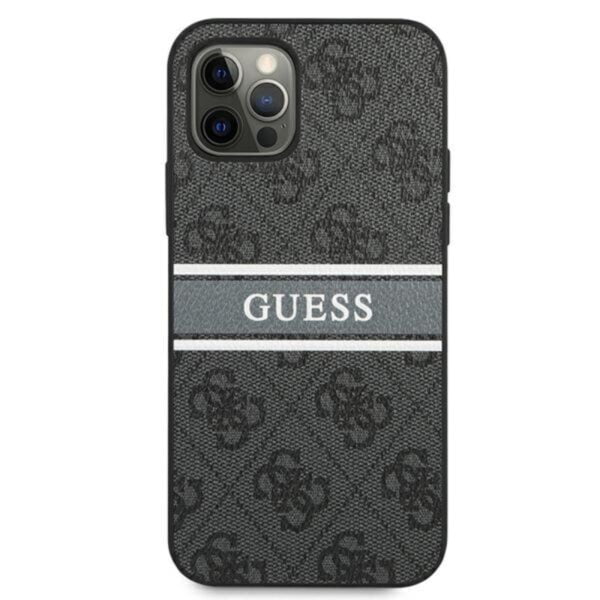 Guess 4G Printed Stripe – dėklas, skirtas iPhone 12 / iPhone 12 Pro (pilkas)