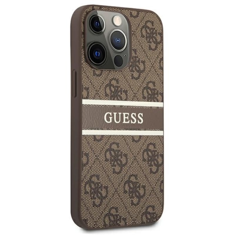 Guess 4G Printed Stripe – dėklas, skirtas iPhone 13 Pro Max (rudas)