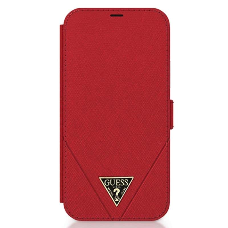Guess Booktype Saffiano V – dėklas, skirtas iPhone 12 / iPhone 12 Pro (raudonas)