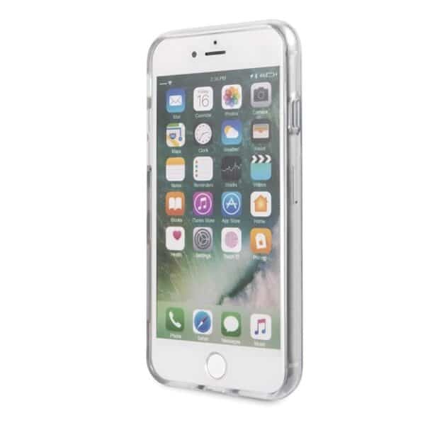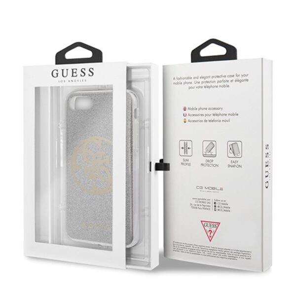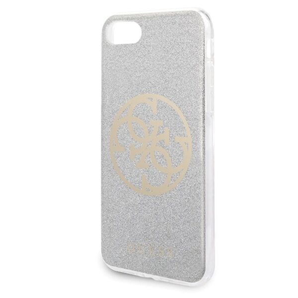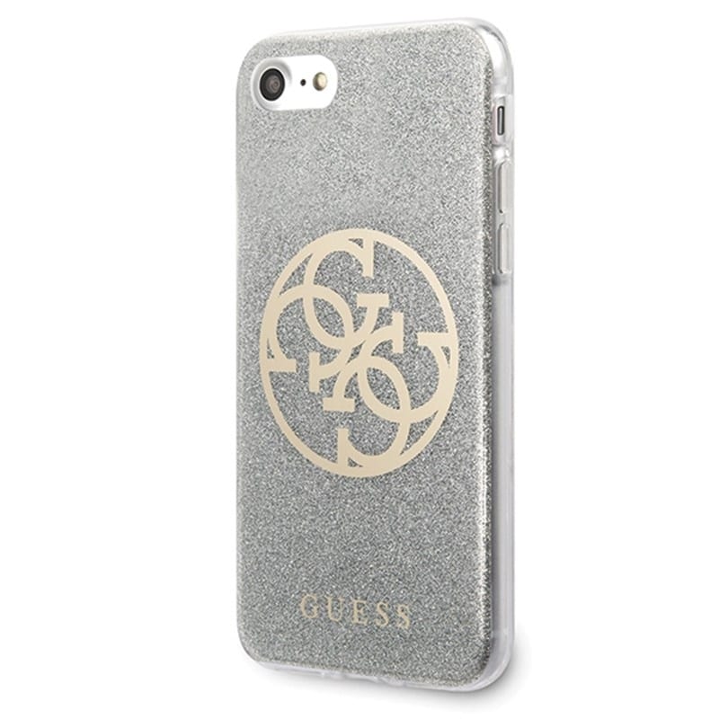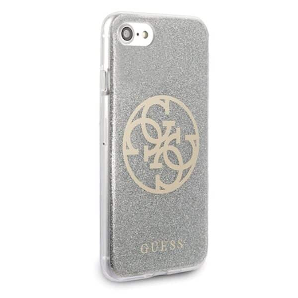 Guess Circle Glitter 4G – dėklas iPhone SE 2020 / 8 / 7 (šviesiai pilkas)