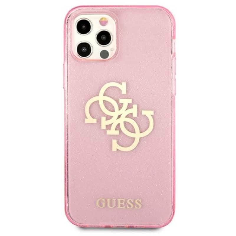 „Guess Glitter 4G Big Logo“ – dėklas, skirtas „iPhone 12“ / „iPhone 12 Pro“ (rožinis)