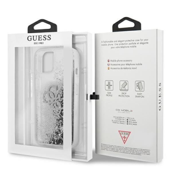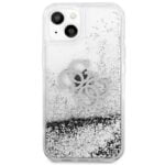 Guess Liquid Glitter 4G didelis logotipas – iPhone 13 dėklas (sidabras)