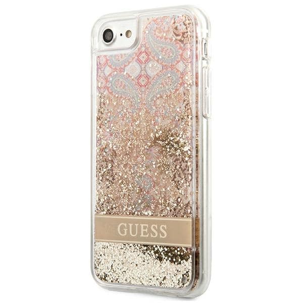 Guess Liquid Glitter Paisley – dėklas, skirtas iPhone SE 2022 / SE 2020 / 8 / 7 (auksinis)