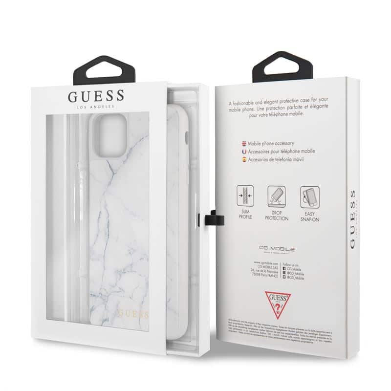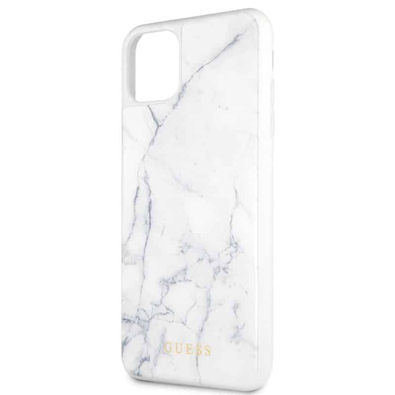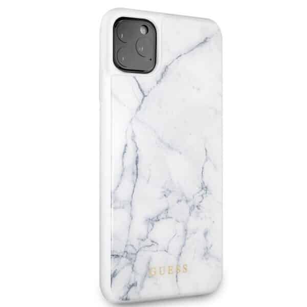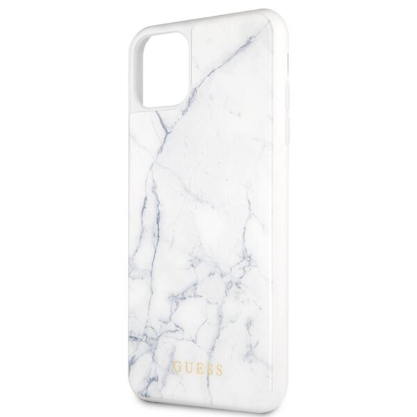 Guess marmurinis grūdinto stiklo dėklas – dėklas, skirtas iPhone 11 Pro Max (baltas)
