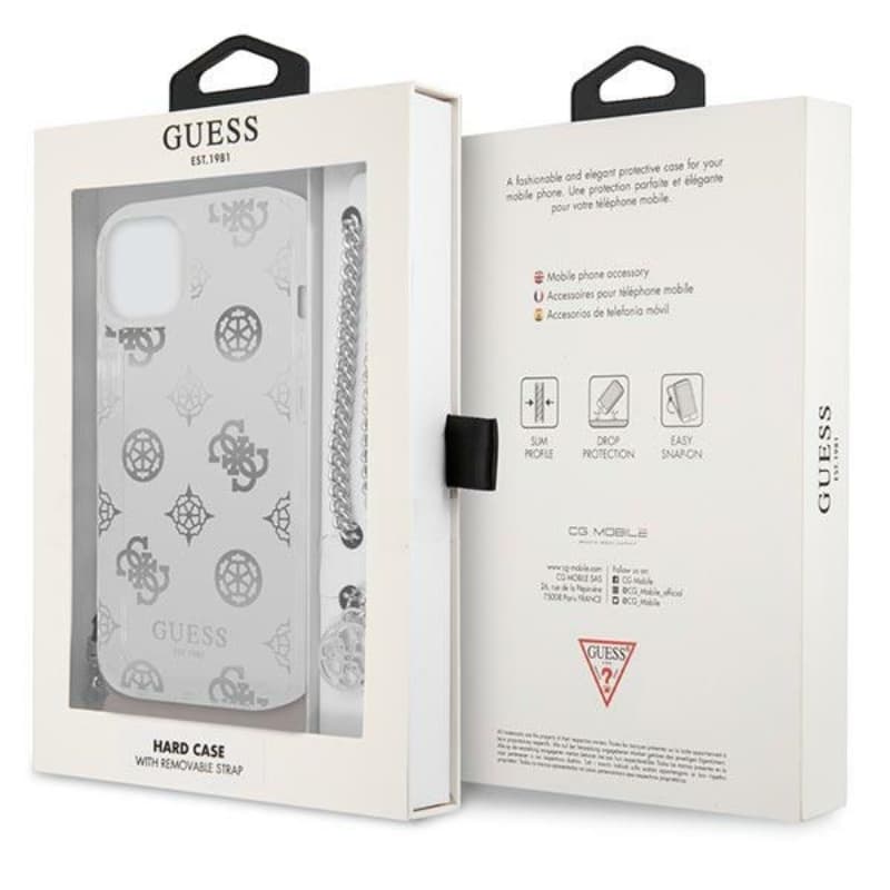 Guess Peony Chain Handle – dėklas, skirtas iPhone 13 (sidabras)