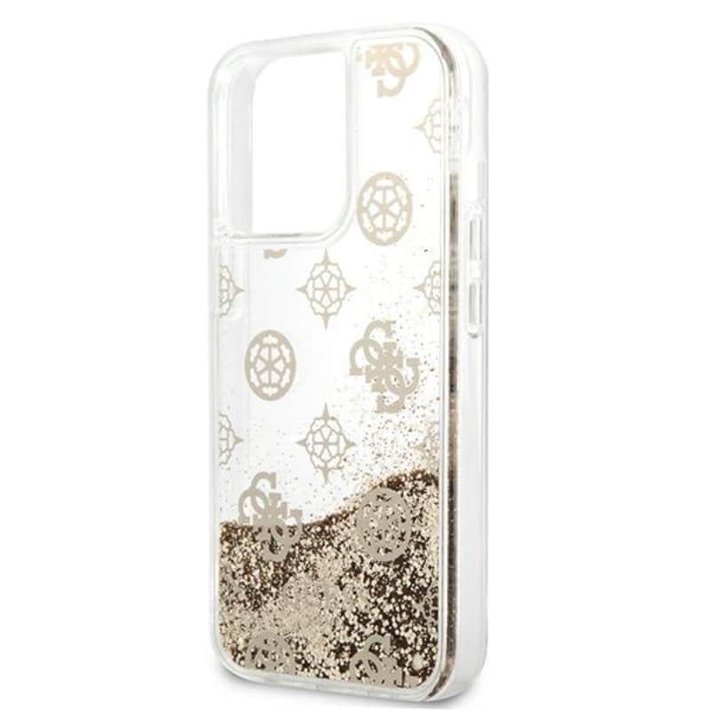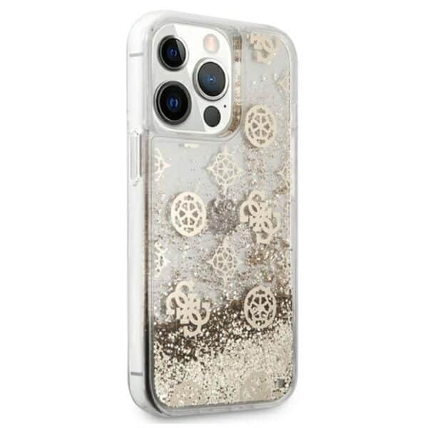 Guess Peony Liquid Glitter – dėklas, skirtas iPhone 13 Pro Max (auksinis)
