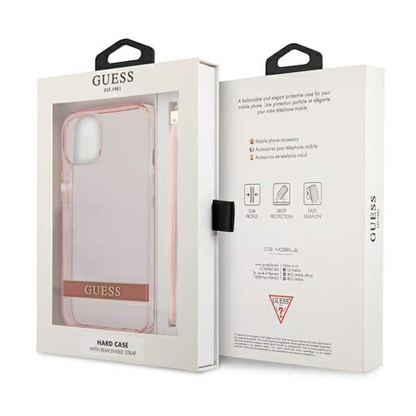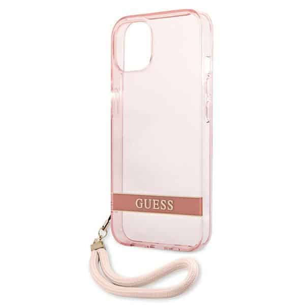 „Guess“ permatomas dirželis – dėklas, skirtas „iPhone 13“ (rožinis)