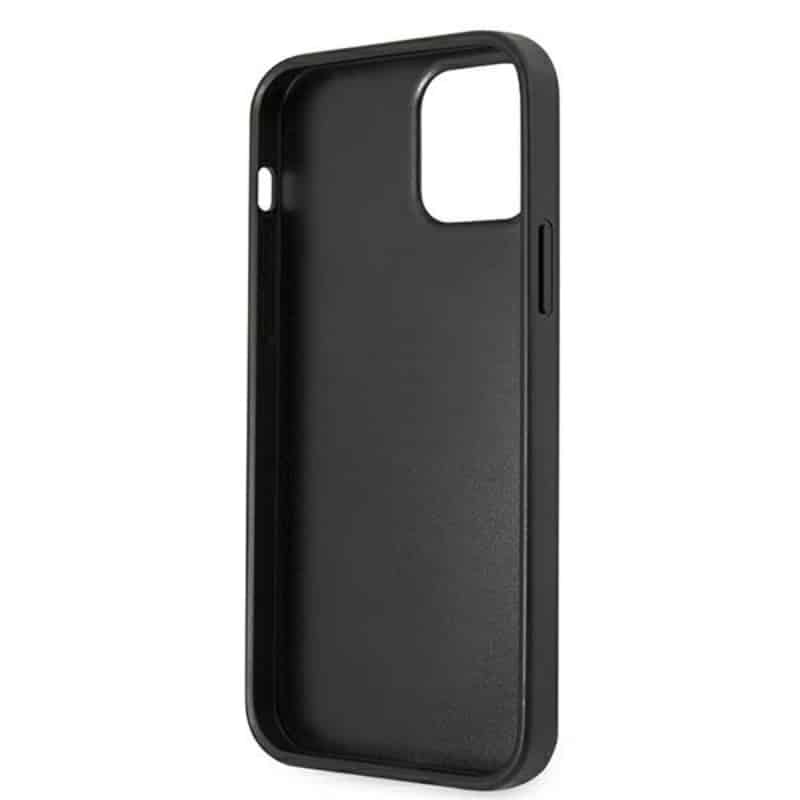 Guess Saffiano 4G didelis metalinis logotipas – dėklas, skirtas iPhone 12 / iPhone 12 Pro (juodas)