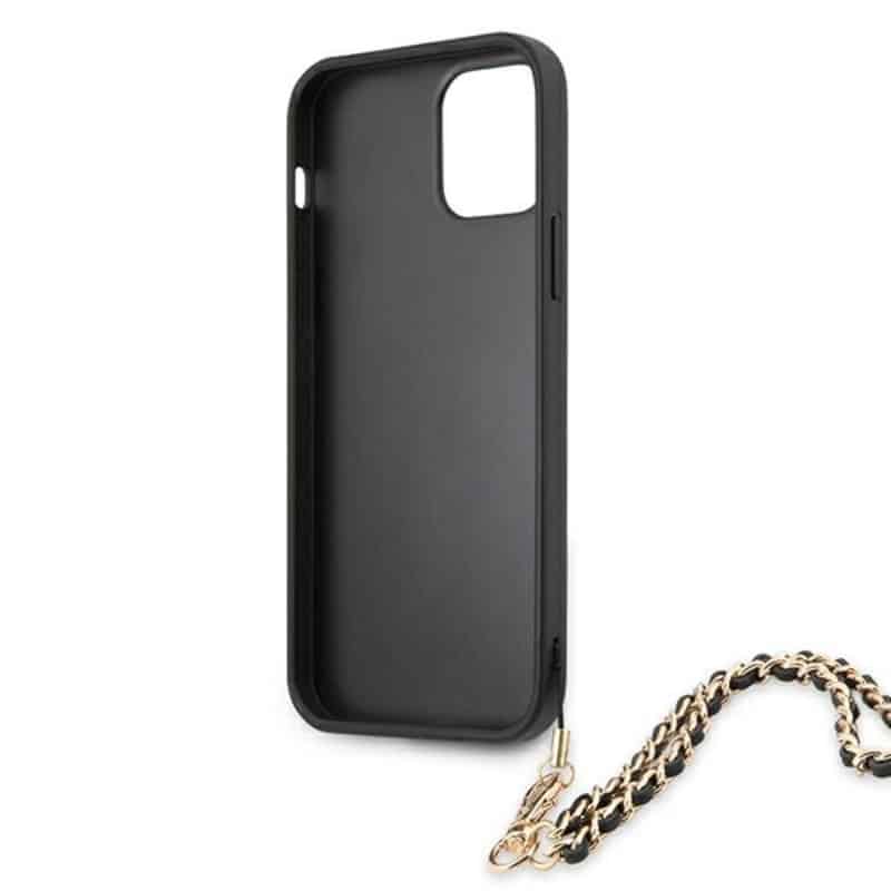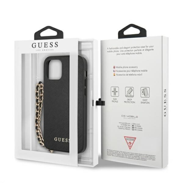Guess Saffiano Chain – dėklas, skirtas iPhone 12 Pro Max (juodas)