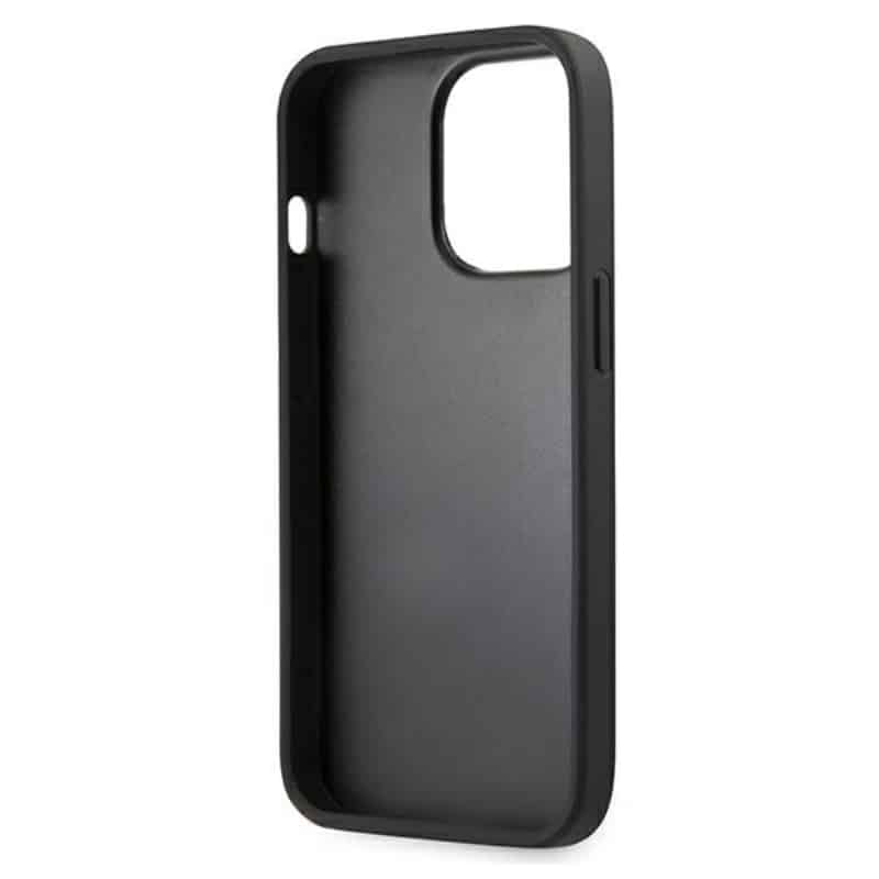 Guess Saffiano metalo logotipo juostelės – dėklas, skirtas iPhone 13 Pro Max (mėlynas)