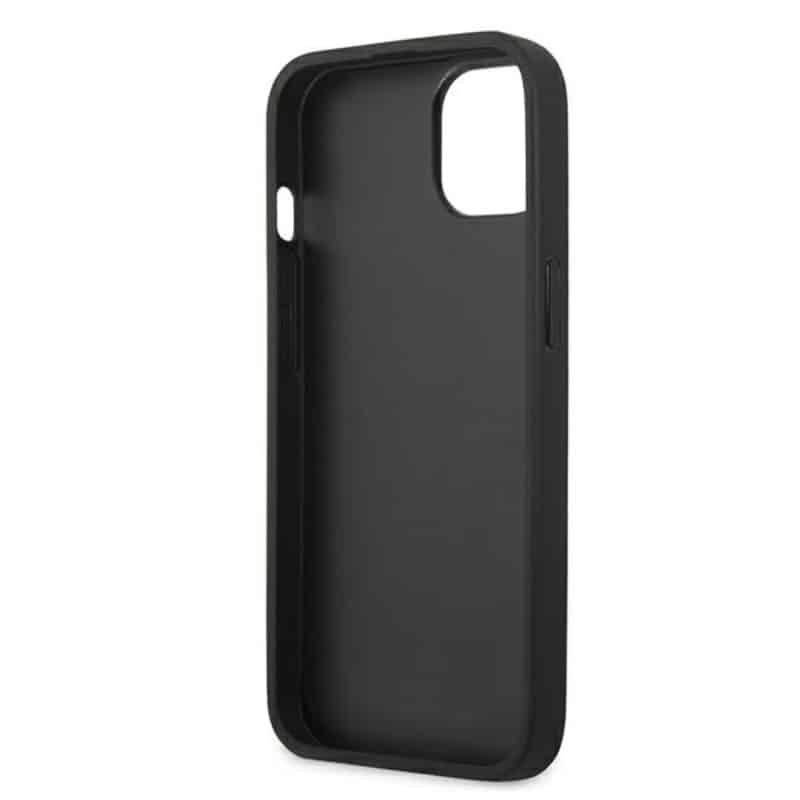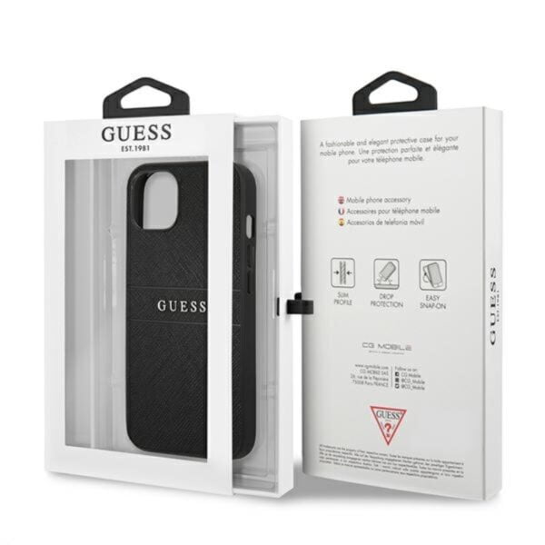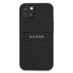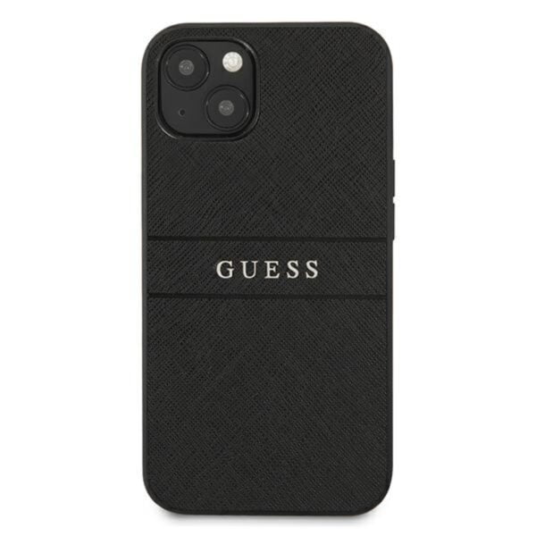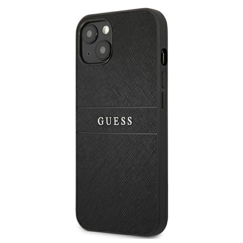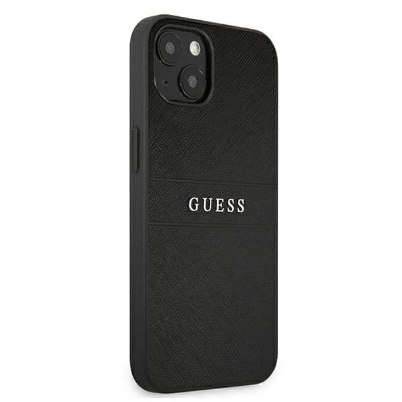 Guess Saffiano metalo logotipo juostelės – iPhone 13 mini dėklas (juodas)