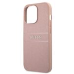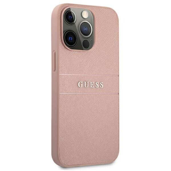 Guess Saffiano Mteal Logo Stripes – dėklas, skirtas iPhone 13 Pro (rožinis)