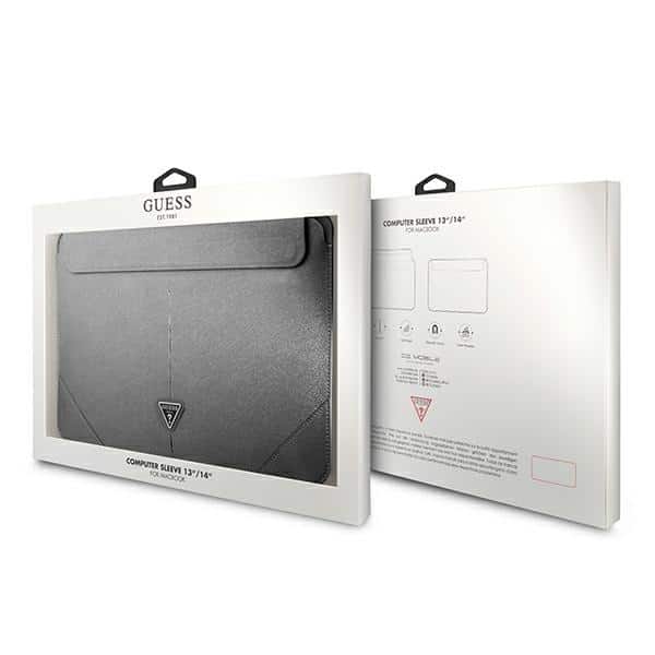 Guess Saffiano Triangle Logo Sleeve Dėklas 13/14 colių nešiojamam kompiuteriui. Pagaminta iš malonios liesti tekstūruotos saffiano eko odos. Trikampio formos „Guess“ logotipas.Magnetinis užsegimas neleidžia nešiojamajam kompiuteriui netyčia išslysti iš pagrindinės kišenės, kuri yra paminkštinta minkšta medžiaga, apsaugančia nuo pažeidimų.Produkto savybės:– Nešiojamojo kompiuterio dėklas skirtas 13″-14″ / Macbook Air / Pro 13,3″ / MacBook Pro 14″- Malonus jausmas saffiano ekologiška oda- Triangular Guess logotipas- Minkštas vidinis pamušalas- Visa įrenginio apsauga br>- Magnetinis uždarymas